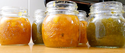 A questo punto la confettura ha raggiunto la consistenza che speravo (quella gialla soprattutto, la verde ‘nzomma :/ ) e ancora bollente l’ho trasferita nei barattoli sterilizzati in acqua bollente e tappata.