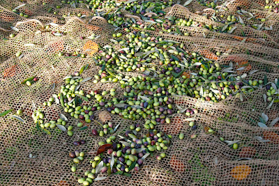 Le olive vengono raccolte in genere tra la fine di ottobre e l’inizio di novembre, o comunque quando la buccia assume un colore che tende al violaceo. A casa mia la raccolta si fa solamente a mano, facendo la cosiddetta brucatura. Si mettono le reti a terra intorno agli alberi e si staccano le olive a mano e poi si raccolgono dalla rete. (ovviamente è meglio usare dei guanti di lana se non volete ritrovarvi le mani surgelate dopo circa 5 minuti).