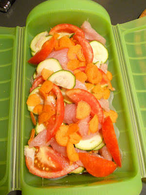 è Marzia che vi parla, e parla francese.. ???? Per questa ricettina dobbiamo ringraziare la Francia, paese da cui mi è stato portato lo “strumento” che ho usato per cucinare questo piatto.. Si chiama “papillote” ed è un contenitore in silicone con un piccolo vassoio che serve per cuocere al vapore, e può andare sia nel forno tradizionale che nel forno a microonde. La mia papillote è verde proprio come quella qui sotto. è prodotta da Lékué, marca spagnola che in Italia è distribuita da Schoenhuber. In realtà però non so dove si compra.. ????